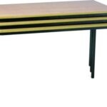 Our Slide/Stacking Crush Bent Tables are created with a robust crushed metal frame and a 25mm square leg system that is longer on one side enabling you to stack with ease. The frames are manufactured out of 1.5mm gauge steel and can be powder coated in a black or grey Epoxy Powder coat finish to give maximum life. We supply a wide range of work top finishes in Laminated MDF the edges can either be clear lacquered or 2mm PVC finish. 18mm thick top supplied as standard.