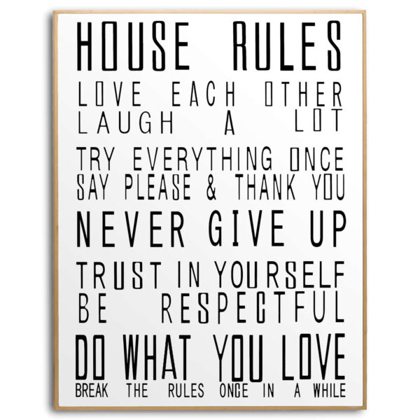 Large Glass House Rules Wall Art