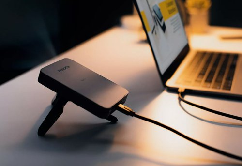 The Philips GoPix 1 is premium, portable, and ultra slim pocket-sized DLP LED projector that delivers up to 75 inches of entertainment in nearly any location. Featuring a built-in battery with power bank compatibility, the GoPix 1 delivers true portability and up to 2 hours of entertainment without the need of a power cord. The USB-C video port lets you connect to all your smart devices including laptops, smartphones, or tablets to conveniently watch all your content. You can also use the USB-C charge with any PD charger. The versatile HDMI port gives you the freedom to connect all your other devices as well. Slips easily into your jacket pocket so you carry it with you on business trips. The built-in speaker delivers clear sound for your professional presentations or entertainment.