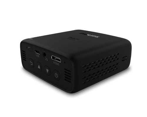 The Philips PicoPix Micro+ is a pocket-sized and ultra-portable DLP projector that delivers up to 70 inches of entertainment in nearly any location. 35% brighter than Micro, and featuring a built-in battery with power bank compatibility. The PicoPix Micro+ delivers true portability and up to 3 hours of entertainment without the need of a power cord. Lightweight and measuring only 76mm x 74mm this tiny projector can be placed in your purse, backpack or back pocket, making it perfect for entertainment on the go. A built-in speaker provides clear sound, while a mini-HDMI lets you connect external dongles or any other device like laptops, smartphones or tablets.
